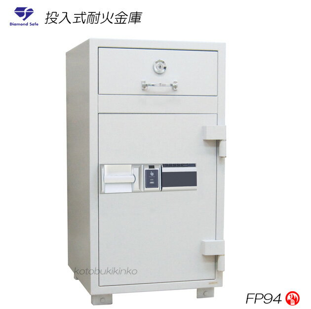 送料無料 FP94 投入式耐火金庫 新品 指紋認証式耐火金庫 ダイヤセーフ電源ボタンを押してリーダーに指を置き、認証が一致すればカギで開閉する簡単な操作 店舗や商売に欠かせない投入庫デジタルロック式金庫 業務用耐火金庫としても人気 ダイヤモンドセーフ[代引き不可]