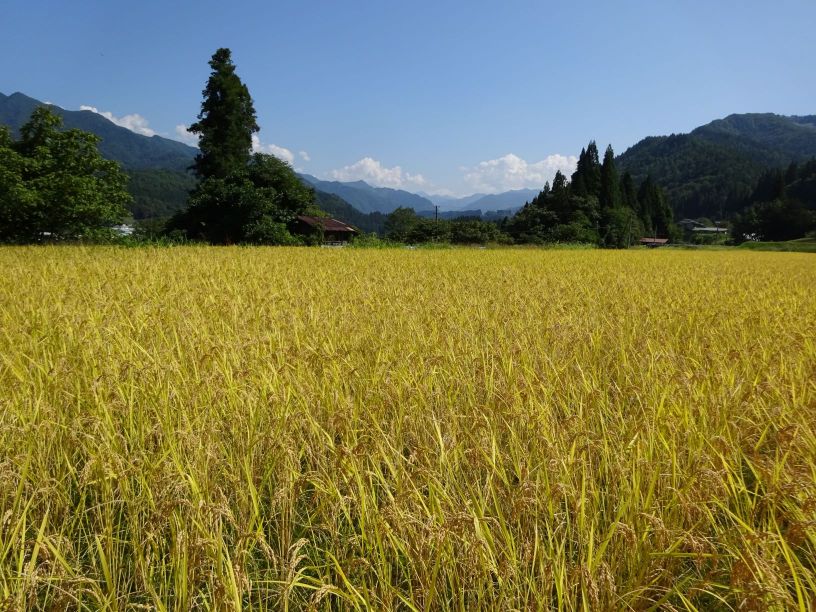 この地域の水田は寒暖差が10度以上と大きく、とても美味しいお米になりました。